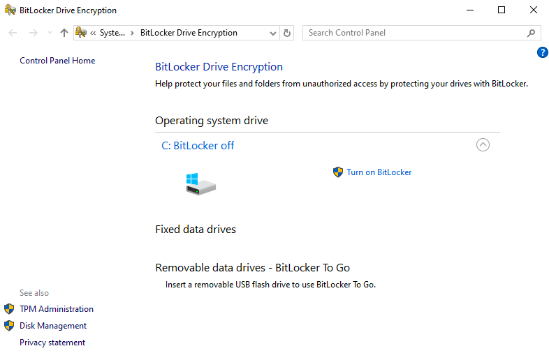 Na tela que aparecer, você poderá verificar se o BitLocker está ativado. Caso esteja, siga estas instruções para desativá-lo: